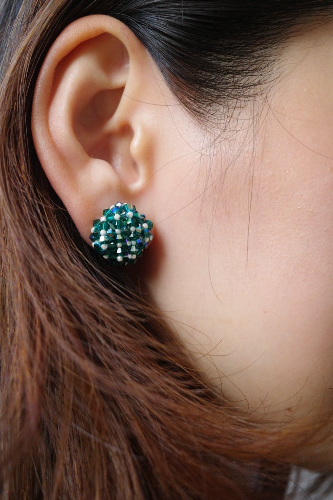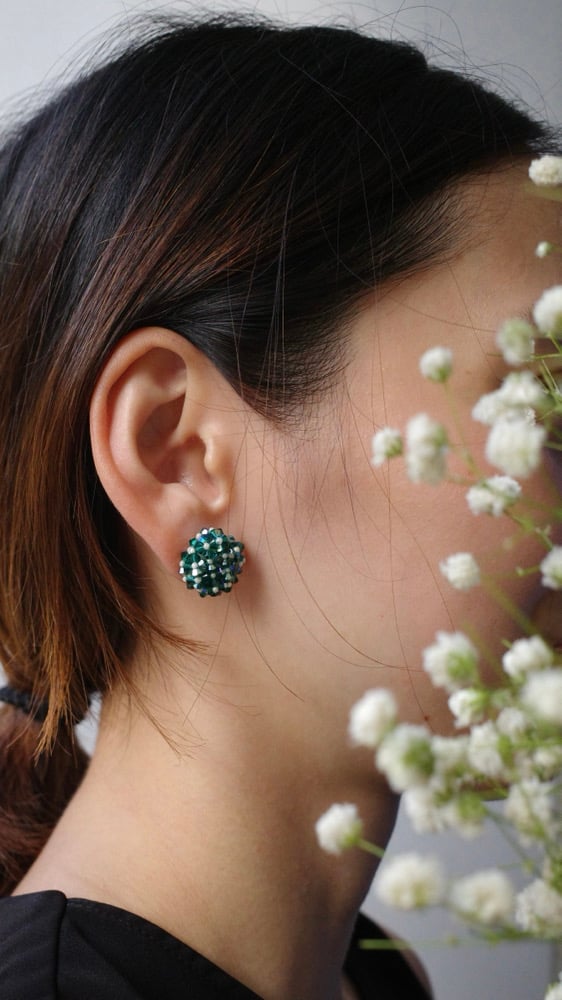 Delicately woven with 88 pieces of Swarovski crystals, this rounded pair catches light from every angle with a luxurious shimmer. I named her Biscotti because its so cute, like a little gem biscuit. A tiny treat for your everyday look, crafted to feel as delightful as it looks. :)