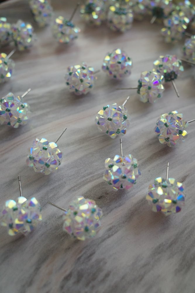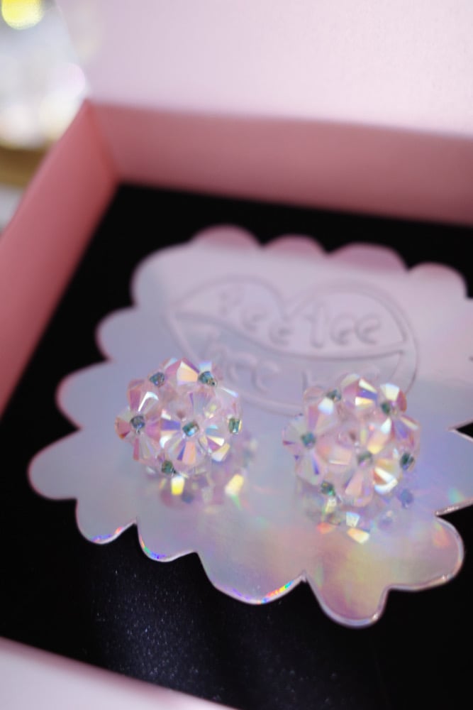 This pair is inspired by the intricate Japanese art of kusudama flowers. Each pair is adorned with 40 pcs of sparkling Swarovski crystals hand beaded together with a pearl centre, catching the light at every angle and adding a touch of glamour to your everyday look. This is for minimalistic days with maximalist effect. ;)