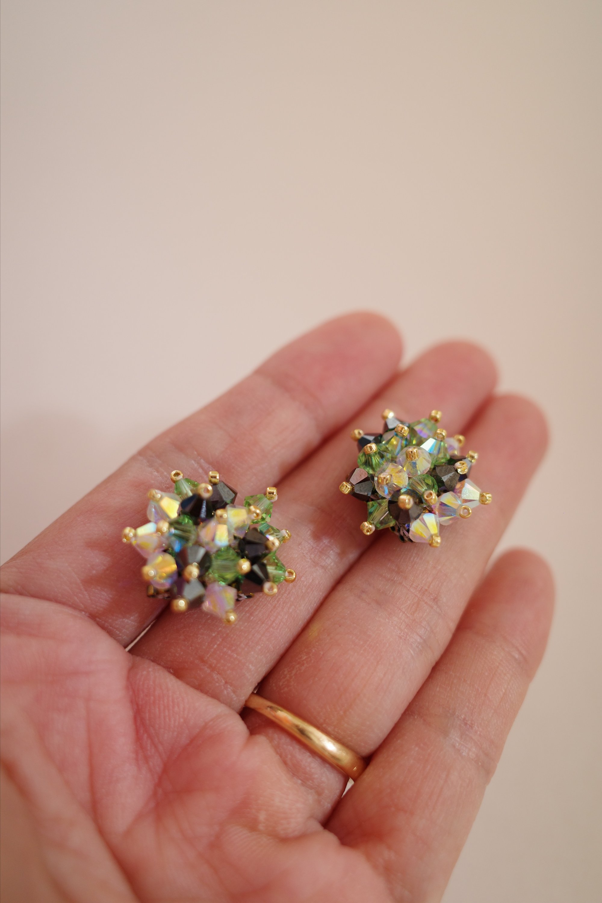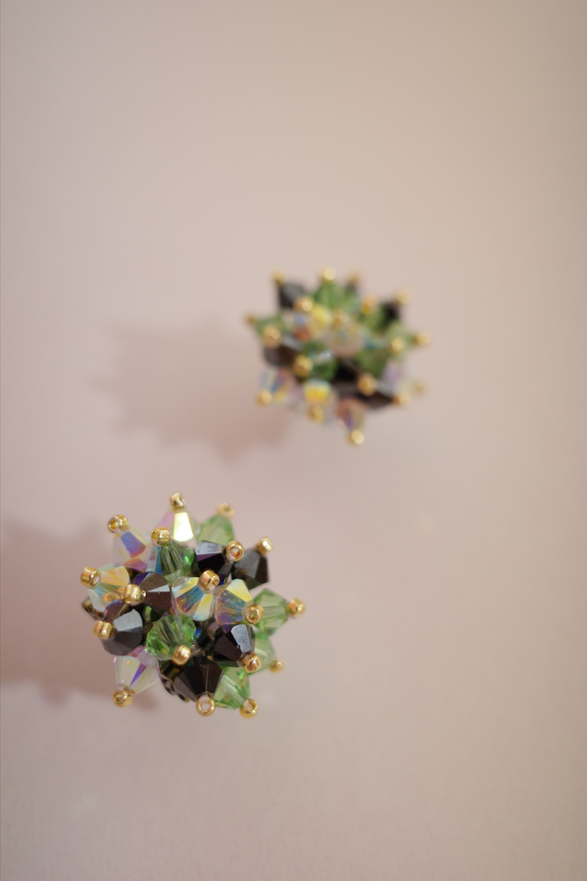 Moira is woven bead by bead entirely by hand. Topped with 18 Swarovski crystals on each piece, woven onto a peyote stitched bead base, Moira catches light extremely well. Elevate any outfit, from a casual t shirt and jeans to a show stopping evening gown, she'll definitely add instant sophistication and flair. ;)