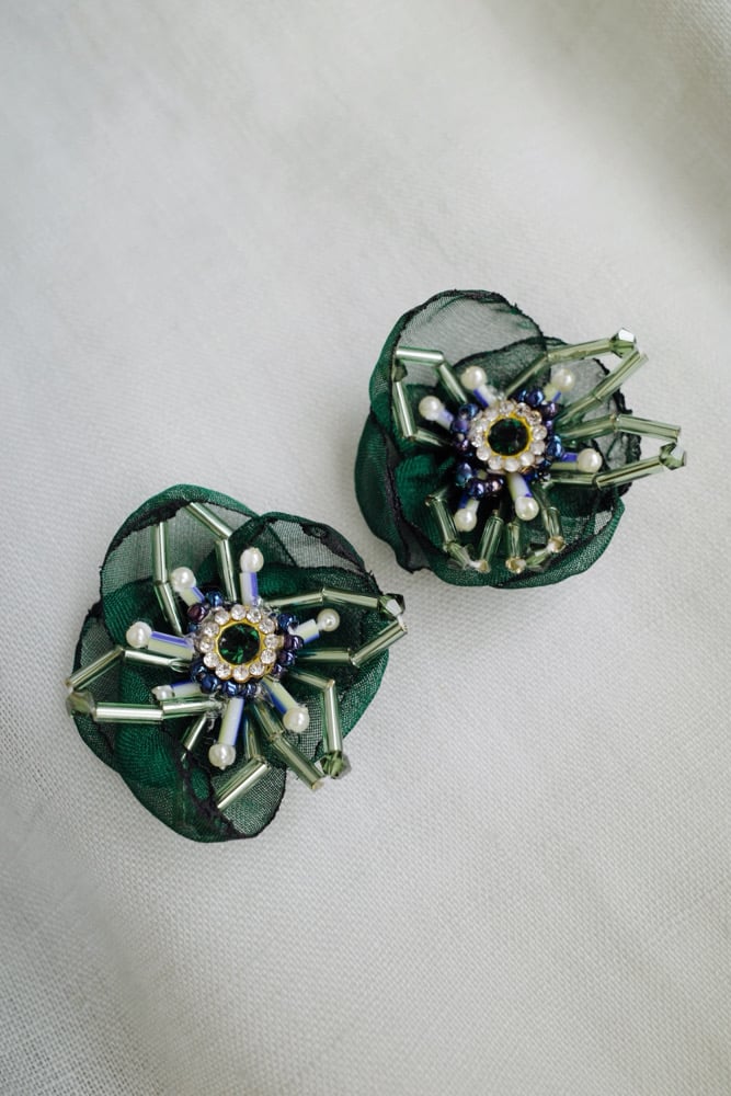 Petal in Emerald brings a fresh depth to our signature floral silhouette. The rich green hue adds a touch of quiet elegance, making it the perfect accent for everyday dressing. Whether paired with a crisp white shirt and denim or a soft evening dress, this piece brings a subtle yet striking finish to any look.
